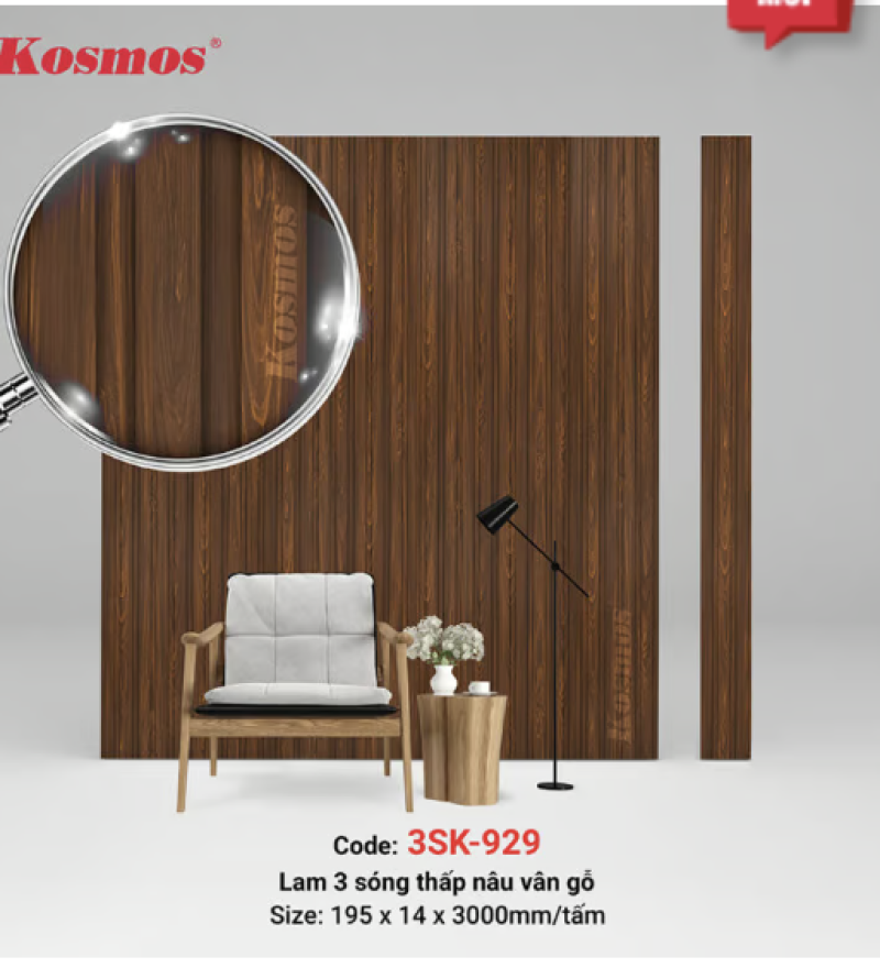 3 sóng thấp SPC nâu vân gỗ 3SK-929