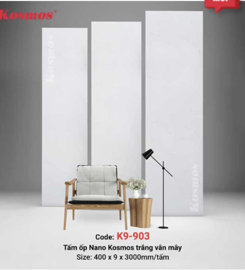 Tấm ốp Nano 9mm SPC trắng vân mây K9-903